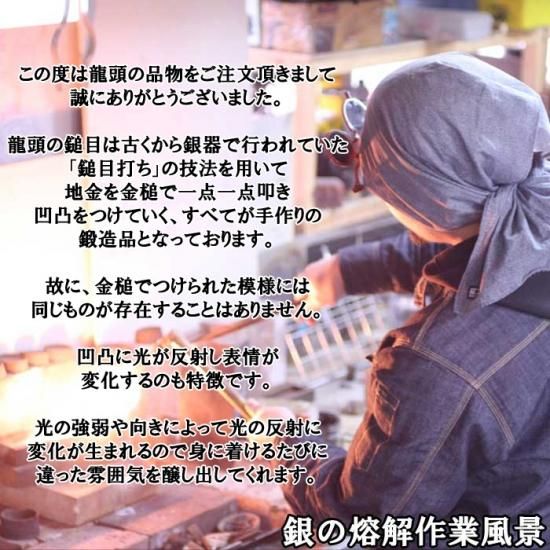 地金を金鎚で一点一点叩き凹凸を付けていく、 全てが手作業にて制作される鍛造品となっております。