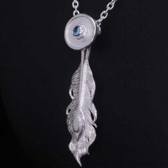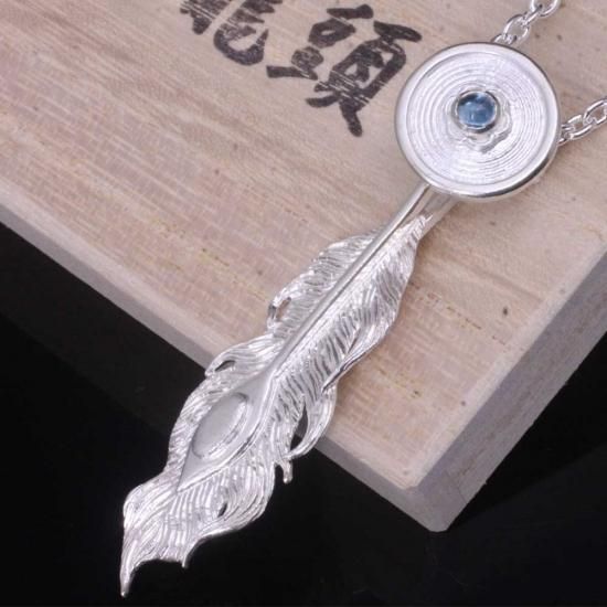 様々なバリエーションを持つ八咫鏡ペンダントに、大ぶりの鳳凰羽をセッティングし存在感をより一層際立たせた一品。
