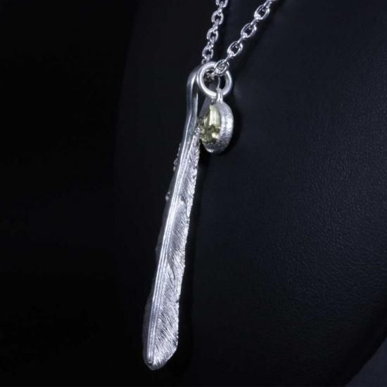 導きの神と伝えられる八咫烏の羽根をイメージしたフェザーペンダントに、