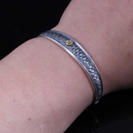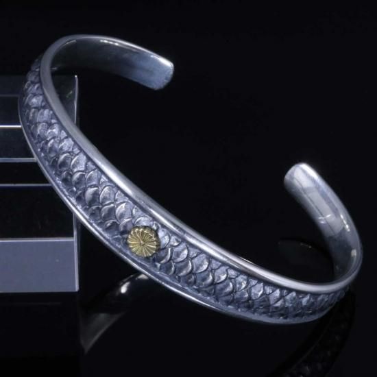 K18製の菊紋と龍の鱗の相性が際立つバングル。