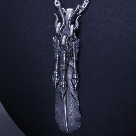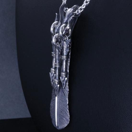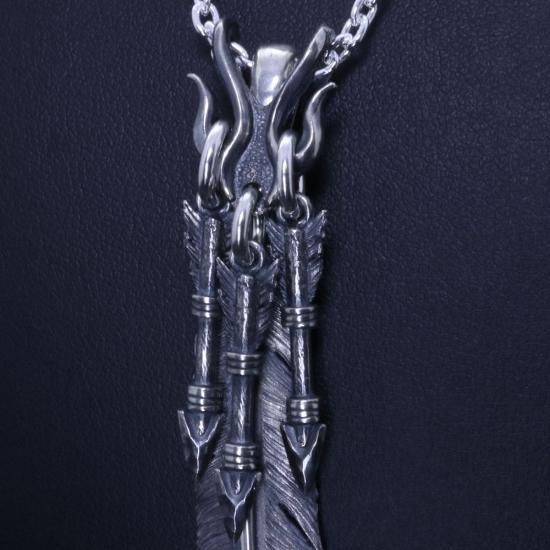 フェザーの上に配置される3本の生弓矢ペンダント(矢)サイズSSが