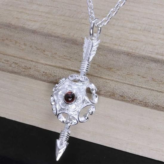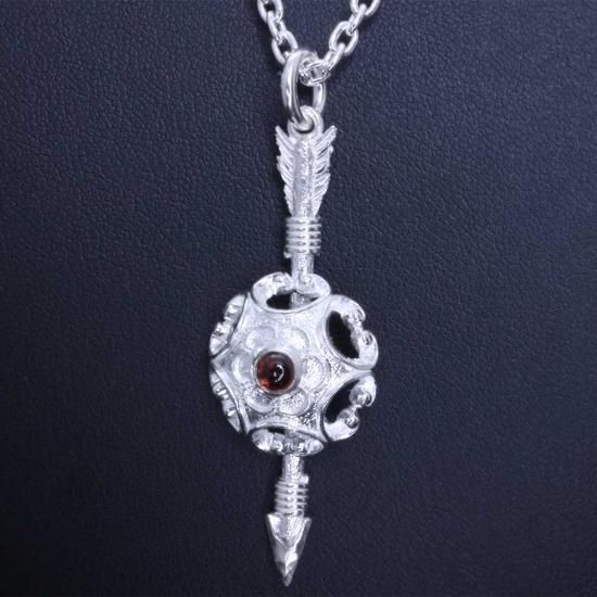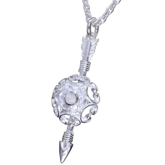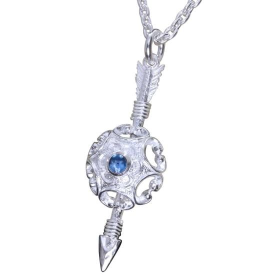 ドーム形状の屈輪文パーツを組み合わせたペンダント。