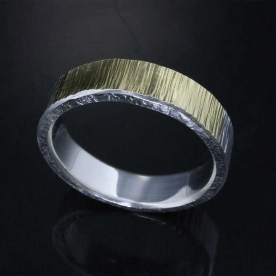 ゴールドの色合いと、白銀の美しさが他では見る事のできないリング。