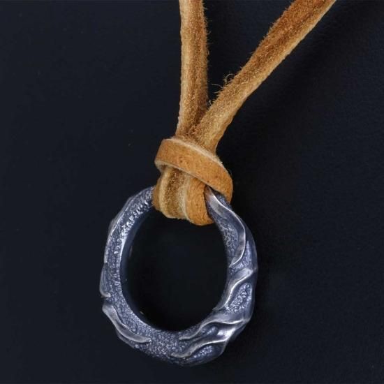 結び目を変更する事でサイズ調整可能な革紐を合わせたアイテム。