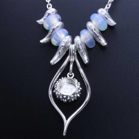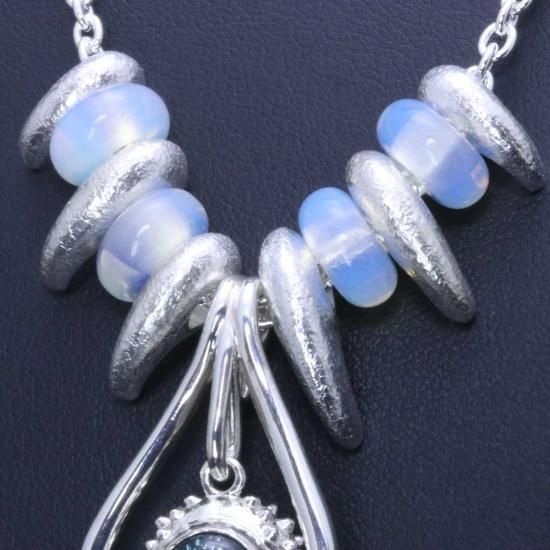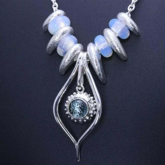 美しく流れるような銀線の中央に、ブルートパーズを配置したペンダントに