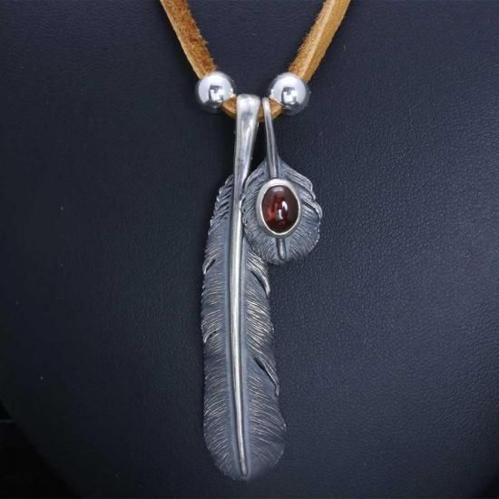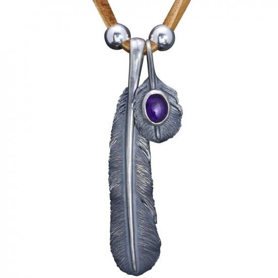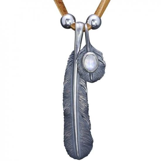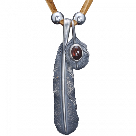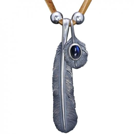 導きの神と伝えられる八咫烏の羽根をイメージしたフェザーペンダントの組合せ。