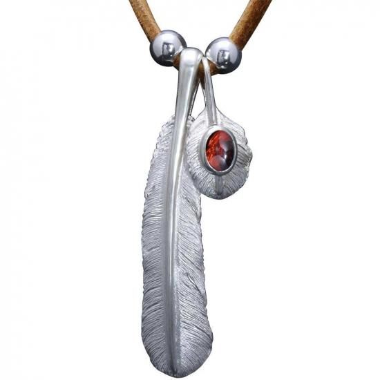 導きの神と伝えられる八咫烏の羽根をイメージしたフェザーペンダントの組合せ。